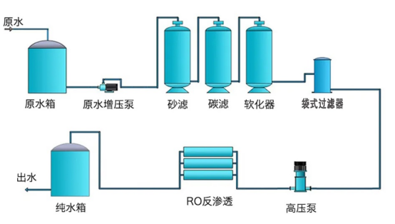 以常見的超純水處理工藝為例,大流量多袋式過濾器可以用在反滲透設備之前和多介質過濾之后,主要起到的是精密過濾和保護過濾的作用。